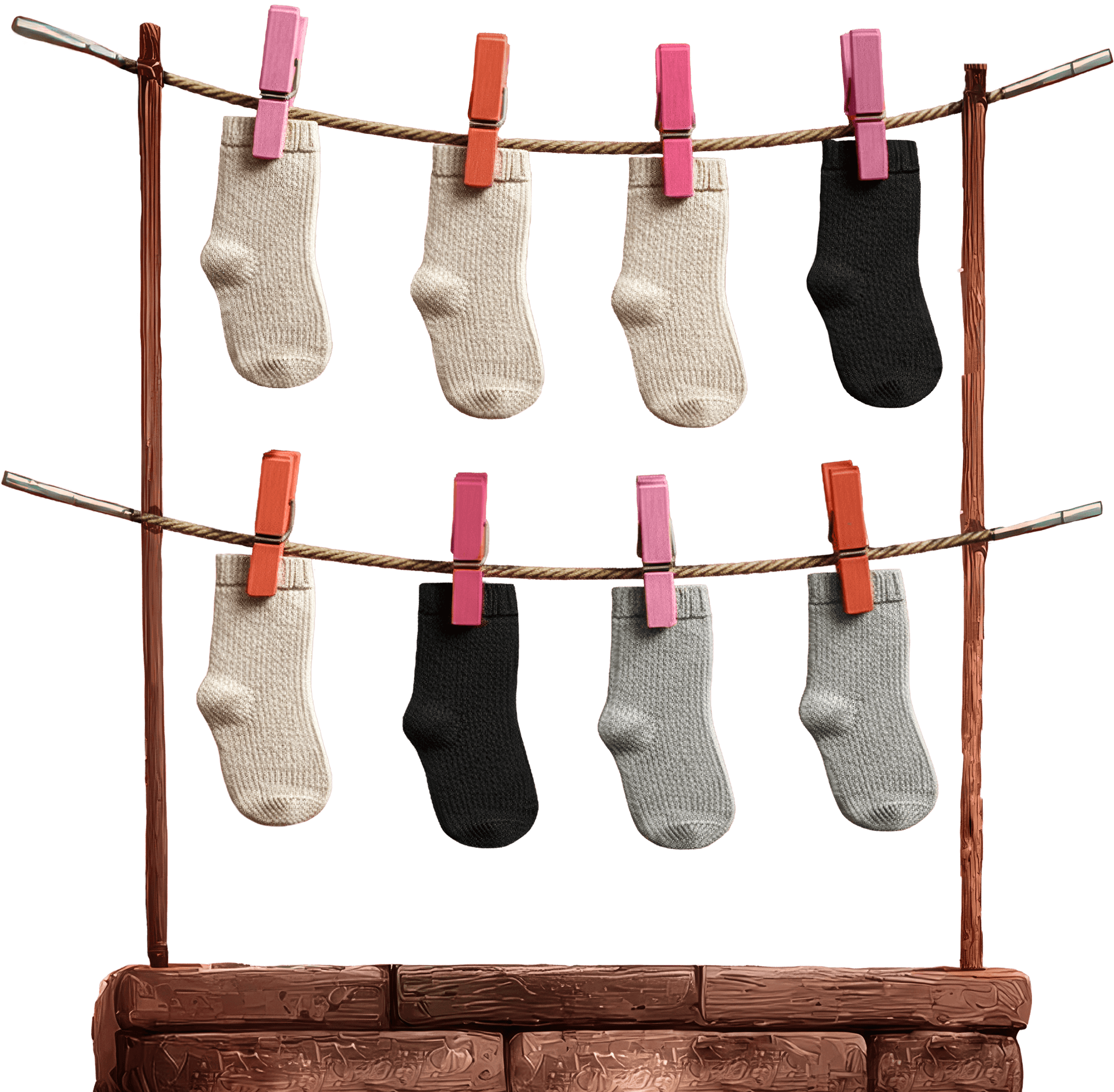 Context: Target is the most pragmatic person in household. LEGO collector—obsessive organizational skills, precise inventory tracking. Owns exclusively white, black, and grey socks. Knows exactly which pairs together. Hangs laundry on drying string with clothespins—can visually verify everything.